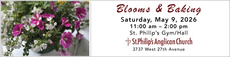 Community Calendar OrganizersVenues Dunbar Residents' Association St. Philip's Anglican Church Dunbar Garden Club Plant Sale 2026Qigong Workshop – Brock HouseWildfire–Emergency Preparedness Open House – DEEP at Dunbar Community CentreBlooms & Baking – St. Philip's ChurchUnited Voices Choir – St. Andrews-Wesley United ChurchUnited Voices Choir – Pacific Spirit United ChurchDisco Dance – Old Barn Community Centre UBCCanada Day at the UNA – Wesbrook Community CentreOlder eventsNext events